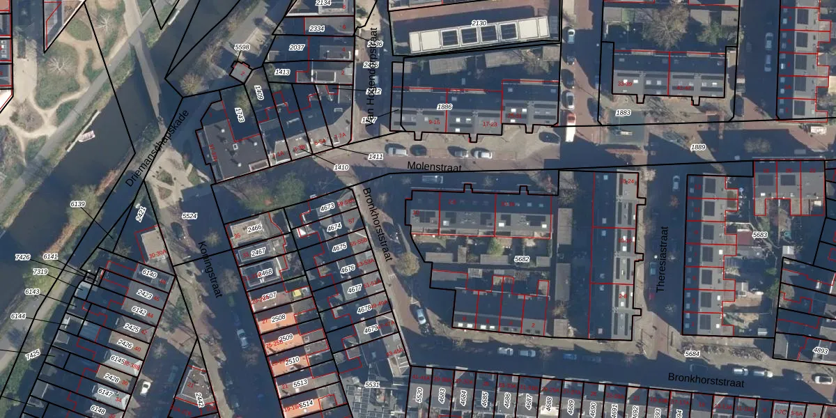 Het adres ligt op het perceel LDN01-K-5682, dat zich in de kadastrale gemeente Leiden bevindt. De gemiddelde perceeloppervlakte in de kadastrale gemeente Leiden is 703,99 m². Dit perceel is met zijn 1787 m² dus groter dan gemiddeld. Het grootste perceel in de kadastrale gemeente is 51,8 ha. Het kleinste perceel heeft een oppervlakte van 0 m². Op het perceel zijn 25 adressen aanwezig. De laatste wijziging in het de Basisregistratie Kadaster (BRK) was op 27-08-2003.