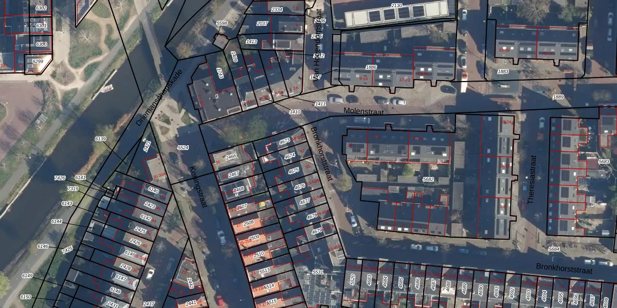 Het perceel waarop Bronkhorststraat 57 staat heeft een oppervlakte van 89 m². Dit is een klein perceel. De perceeloppervlakte wordt geregistreerd door het Kadaster. Gedetailleerde informatie over de maten van dit perceel kunt u vinden in het rapport Kadastrale kaart met maatvoering van Bronkhorststraat 57.