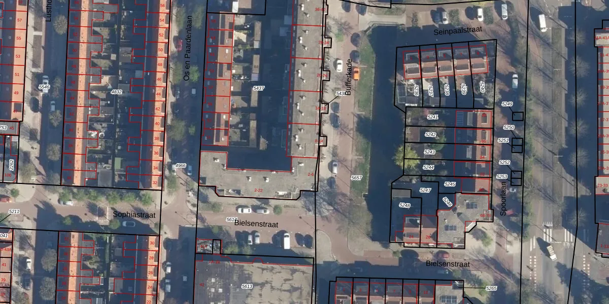 Het perceel waarop Bufferkade 10 staat heeft een oppervlakte van 2435 m². Dit is een zeer groot perceel. De perceeloppervlakte wordt geregistreerd door het Kadaster. Gedetailleerde informatie over de maten van dit perceel kunt u vinden in het rapport Kadastrale kaart met maatvoering van Bufferkade 10.
