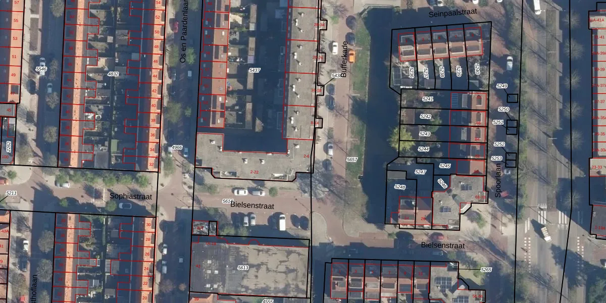 Het perceel waarop Bufferkade 4 staat heeft een oppervlakte van 2435 m². Dit is een zeer groot perceel. De perceeloppervlakte wordt geregistreerd door het Kadaster. Gedetailleerde informatie over de maten van dit perceel kunt u vinden in het rapport Kadastrale kaart met maatvoering van Bufferkade 4.