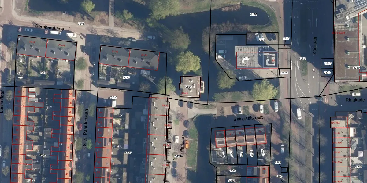 Bufferkade 47 is gelegen op kadastraal perceel LDN01K5436. Deze kadastrale aanduiding is uniek en wordt gebruikt door het Kadaster om eigendomsrechten en andere zakelijke rechten vast te leggen. Het perceel maakt onderdeel uit van de kadastrale gemeente Leiden.