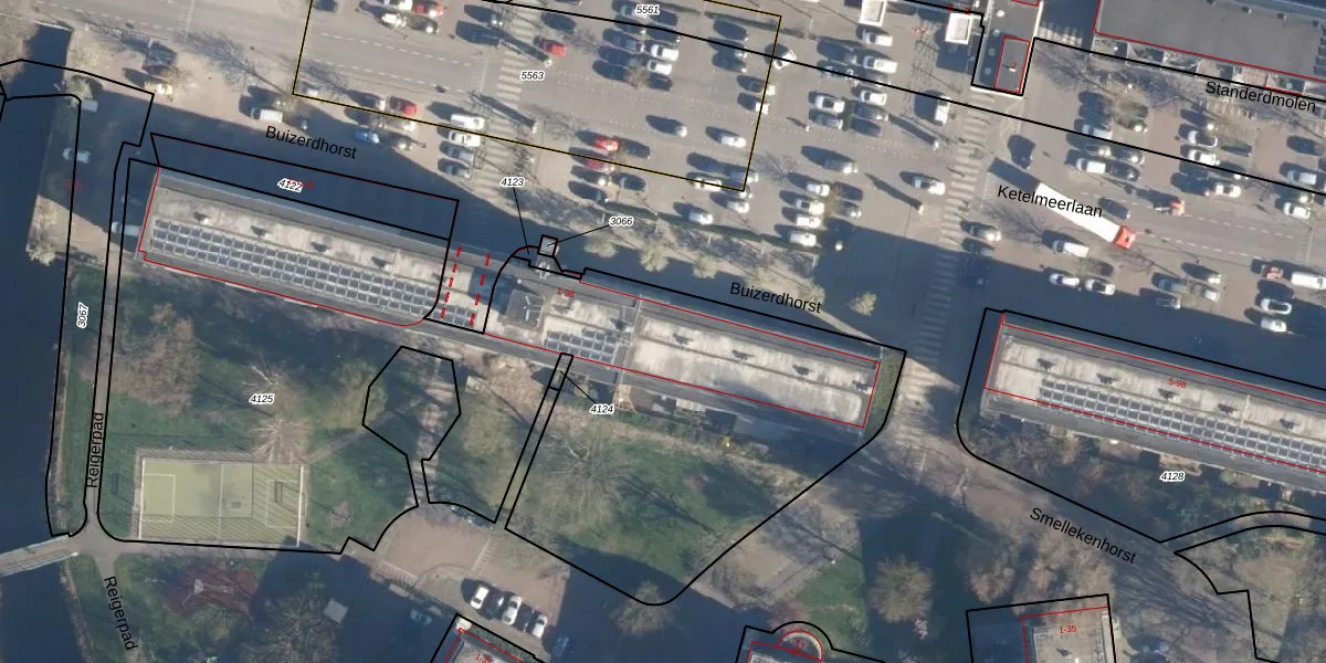 Het adres ligt op het perceel LDN01-S-4125, dat zich in de kadastrale gemeente Leiden bevindt. Het perceel is met 4706 m² relatief groot. Het gemiddelde ligt in de kadastrale gemeente Leiden op 704,03 m². Het grootste perceel in de kadastrale gemeente is 51,8 ha. Het kleinste perceel heeft een oppervlakte van 0 m². Er zijn 47 adressen aanwezig op het perceel. De huidige grenzen van het perceel zijn digitaal in de Basisregistratie Kadaster (BRK) geregistreerd op 07-07-2008.
