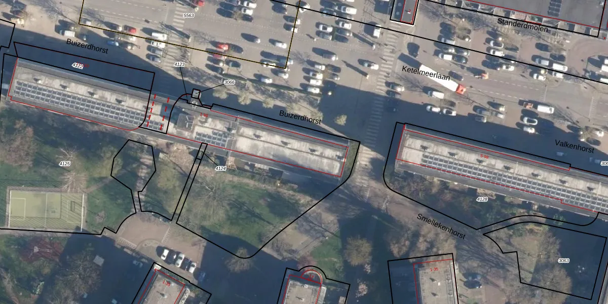 Het perceel waarop Buizerdhorst 52 staat heeft een oppervlakte van 4706 m². Dit is een zeer groot perceel. De perceeloppervlakte wordt geregistreerd door het Kadaster. Gedetailleerde informatie over de maten van dit perceel kunt u vinden in het rapport Kadastrale kaart met maatvoering van Buizerdhorst 52.
