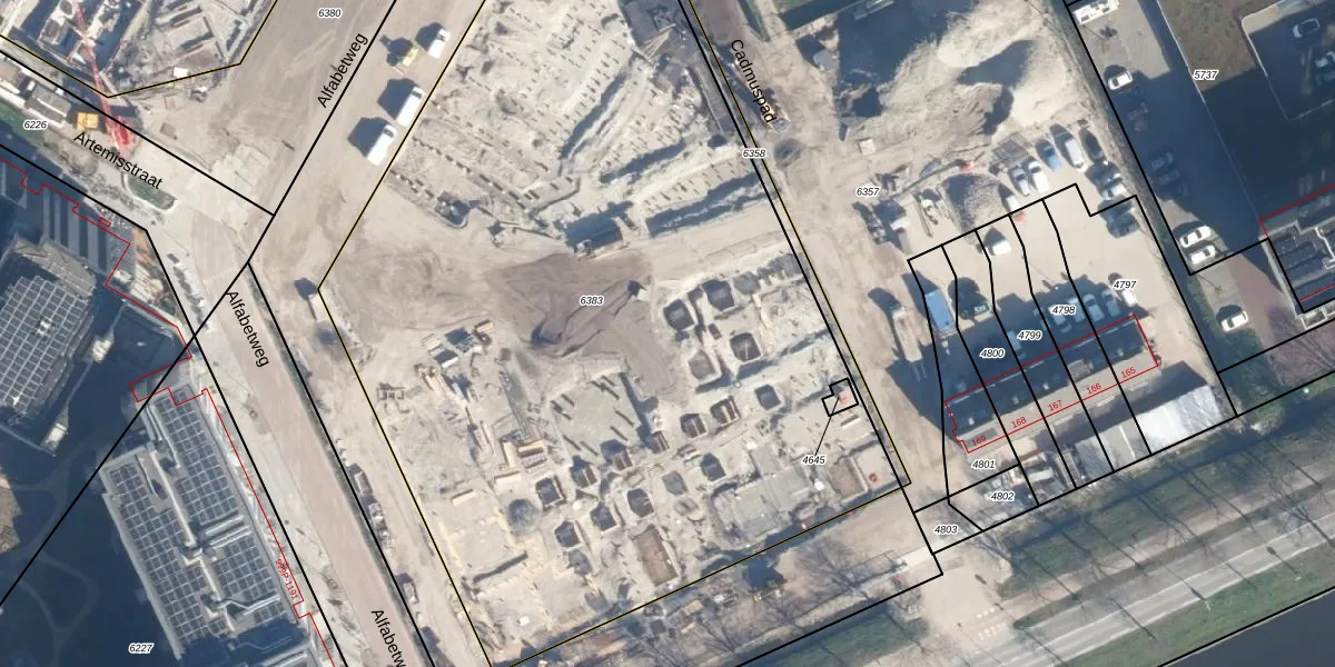Het adres is gelegen op perceel 6383 in de sectie O en de kadastrale gemeente Leiden. De kadastrale aanduiding is aldus LDN01-O-6383. Het perceel is met 5840 m² relatief groot. Het gemiddelde ligt in de kadastrale gemeente Leiden op 703,94 m². Het kleinste perceel in de kadastrale gemeente is 0 m² groot. De grootste perceeloppervlakte is 51,8 ha. Er zijn 433 adressen aanwezig op het perceel. In de Basisregistratie Kadaster (BRK) werden de grenzen van het perceel geregistreerd op 10-06-2024.