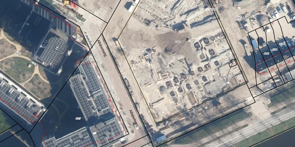 Het adres is gelegen op perceel 6383 in de sectie O en de kadastrale gemeente Leiden. De kadastrale aanduiding is aldus LDN01-O-6383. Het perceel is met 5840 m² relatief groot. Het gemiddelde ligt in de kadastrale gemeente Leiden op 703,94 m². Het grootste perceel in de kadastrale gemeente is 51,8 ha. Het kleinste perceel heeft een oppervlakte van 0 m². Op het perceel liggen in totaal 433 adressen. De huidige grenzen van het perceel zijn digitaal in de Basisregistratie Kadaster (BRK) geregistreerd op 10-06-2024.