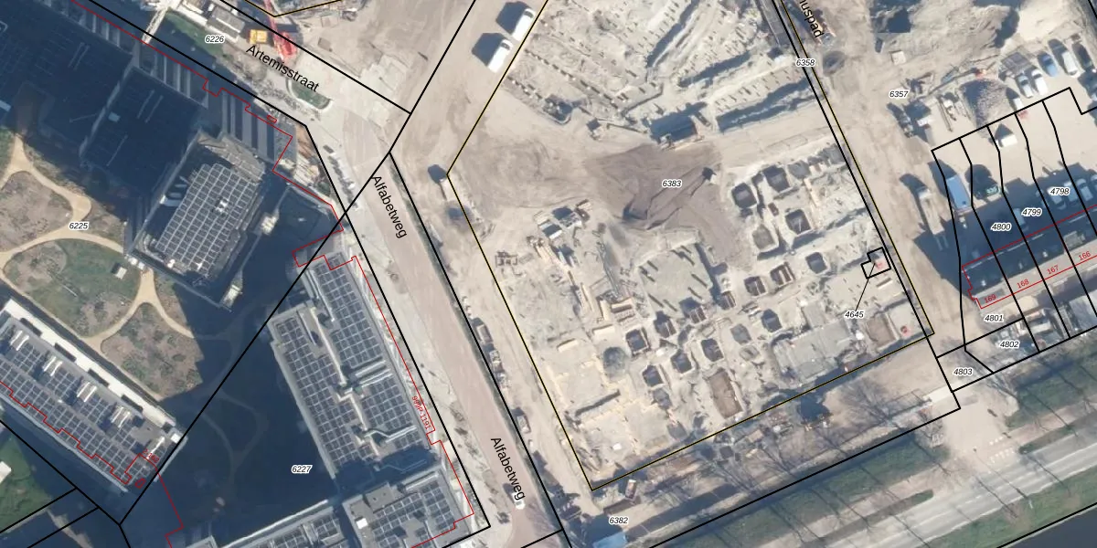 Het adres is gelegen op perceel 6383 in de sectie O en de kadastrale gemeente Leiden. De kadastrale aanduiding is aldus LDN01-O-6383. Het perceel is met 5840 m² relatief groot. Het gemiddelde ligt in de kadastrale gemeente Leiden op 703,94 m². Het grootste perceel in de kadastrale gemeente is 51,8 ha. Het kleinste perceel heeft een oppervlakte van 0 m². Op het perceel liggen in totaal 433 adressen. De huidige grenzen van het perceel zijn digitaal in de Basisregistratie Kadaster (BRK) geregistreerd op 10-06-2024.