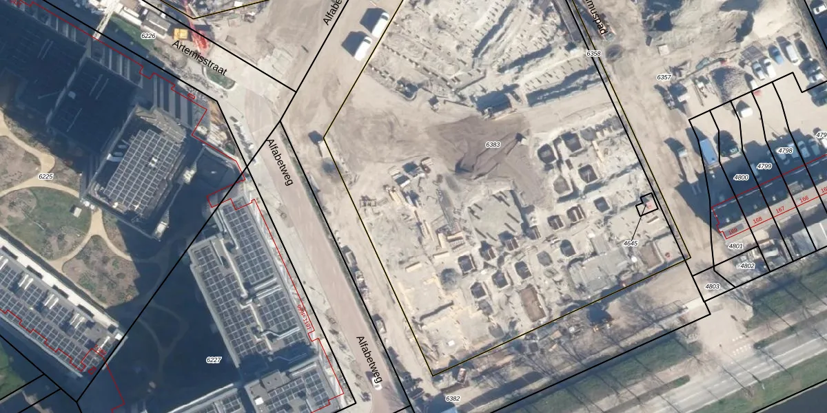 Het adres is gelegen op perceel 6383 in de sectie O en de kadastrale gemeente Leiden. De kadastrale aanduiding is aldus LDN01-O-6383. Het perceel is met 5840 m² relatief groot. Het gemiddelde ligt in de kadastrale gemeente Leiden op 703,94 m². Het kleinste perceel in de kadastrale gemeente is 0 m² groot. De grootste perceeloppervlakte is 51,8 ha. Op het perceel zijn 433 adressen aanwezig. De laatste wijziging in het de Basisregistratie Kadaster (BRK) was op 10-06-2024.