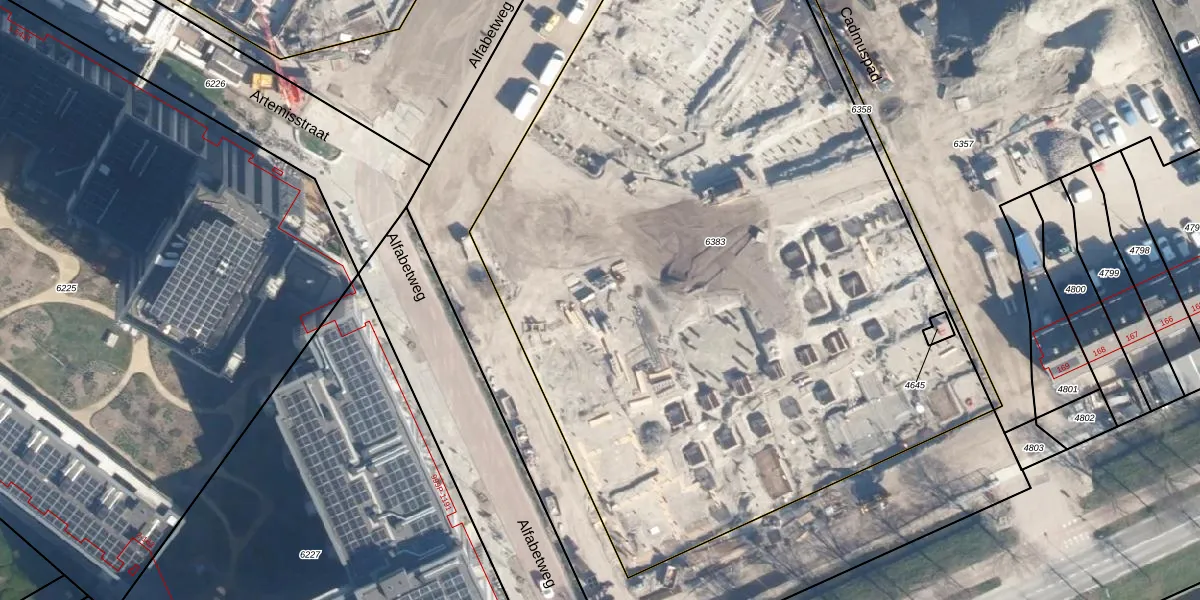 Het adres is gelegen op perceel 6383 in de sectie O en de kadastrale gemeente Leiden. De kadastrale aanduiding is aldus LDN01-O-6383. Het perceel is met 5840 m² relatief groot. Het gemiddelde ligt in de kadastrale gemeente Leiden op 703,99 m². Het kleinste perceel in de kadastrale gemeente is 0 m² groot. De grootste perceeloppervlakte is 51,8 ha. Op het perceel zijn 433 adressen aanwezig. In de Basisregistratie Kadaster (BRK) werden de grenzen van het perceel geregistreerd op 10-06-2024.