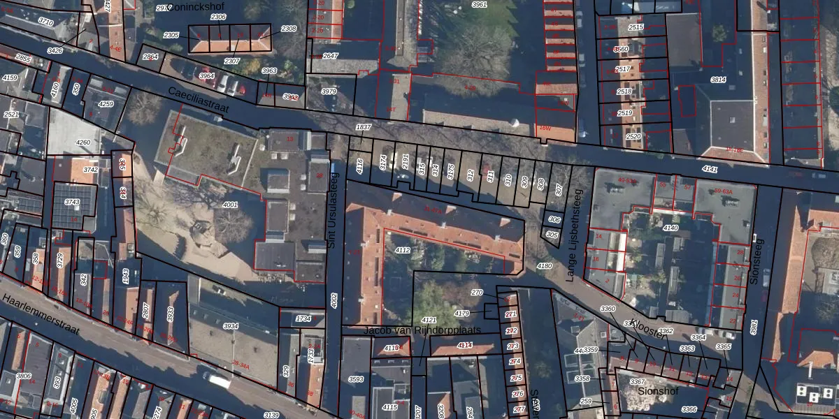 Het perceel waarop Caeciliastraat 39 staat heeft een oppervlakte van 970 m². Dit is een groot perceel. De perceeloppervlakte wordt geregistreerd door het Kadaster. Gedetailleerde informatie over de maten van dit perceel kunt u vinden in het rapport Kadastrale kaart met maatvoering van Caeciliastraat 39.