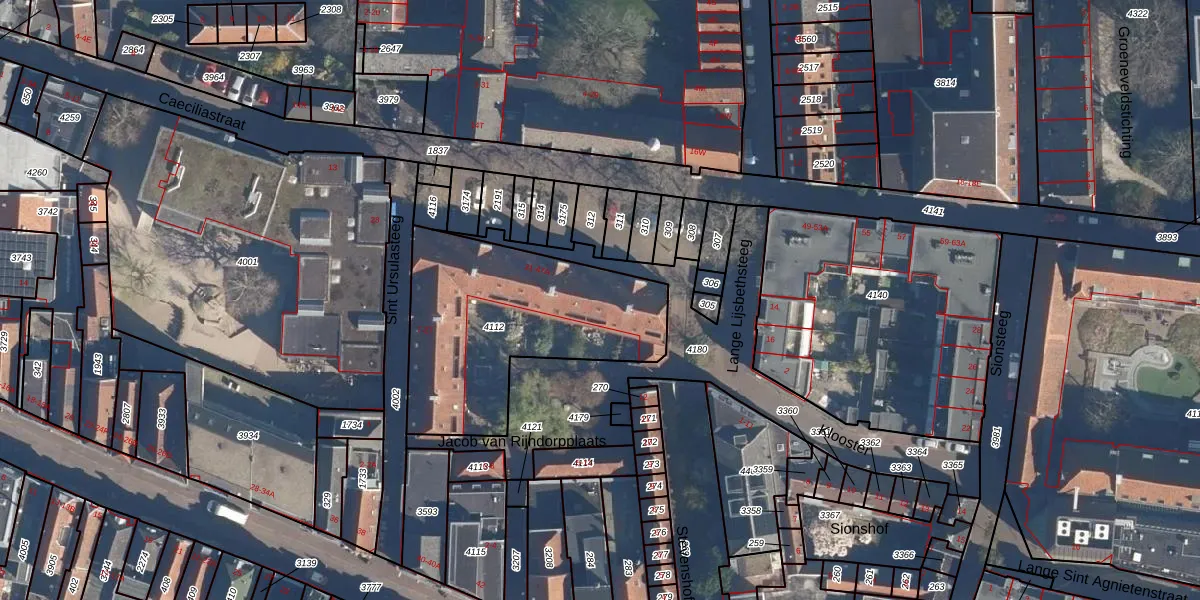Het perceel waarop Caeciliastraat 47 staat heeft een oppervlakte van 970 m². Dit is een groot perceel. De perceeloppervlakte wordt geregistreerd door het Kadaster. Gedetailleerde informatie over de maten van dit perceel kunt u vinden in het rapport Kadastrale kaart met maatvoering van Caeciliastraat 47.