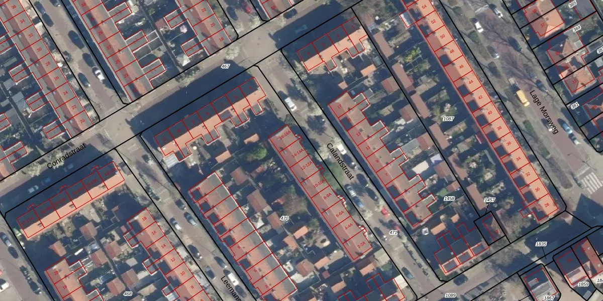 Het adres is gelegen op perceel 470 in de sectie R en de kadastrale gemeente Leiden. De kadastrale aanduiding is aldus LDN01-R-470. De oppervlakte van het perceel is 4268 m². Dat is groter dan gemiddeld in Leiden, waar de gemiddelde perceeloppervlakte op 703,94 m² ligt. De grootste perceeloppervlakte in de kadastrale gemeente is 51,8 ha. De kleinste oppervlakte bedraagt 0 m². Er zijn 40 adressen aanwezig op het perceel. De huidige grenzen van het perceel zijn digitaal in de Basisregistratie Kadaster (BRK) geregistreerd op 19-11-2003.