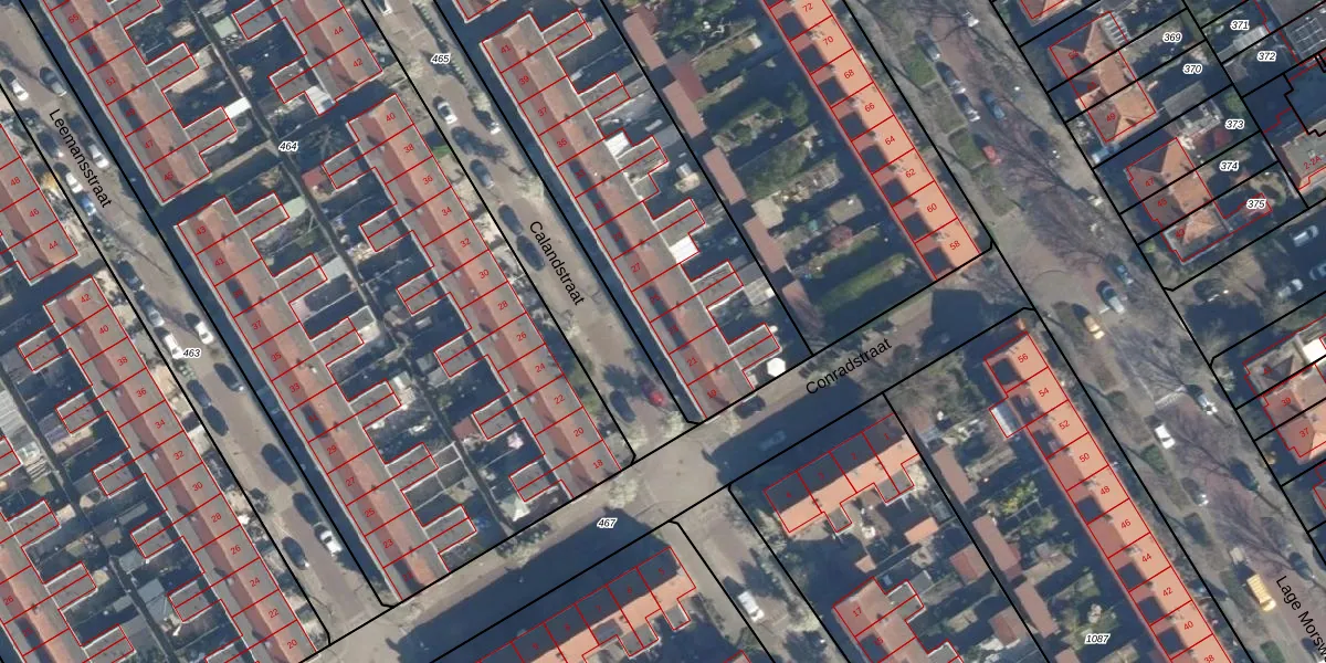 Het perceel waarop Calandstraat 23 staat heeft een oppervlakte van 2905 m². Dit is een zeer groot perceel. De perceeloppervlakte wordt geregistreerd door het Kadaster. Gedetailleerde informatie over de maten van dit perceel kunt u vinden in het rapport Kadastrale kaart met maatvoering van Calandstraat 23.
