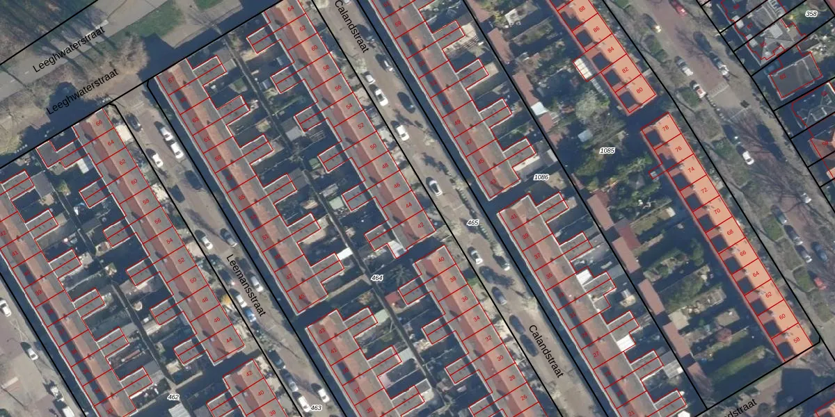 Calandstraat 44 is gelegen op kadastraal perceel LDN01R464. Deze kadastrale aanduiding is uniek en wordt gebruikt door het Kadaster om eigendomsrechten en andere zakelijke rechten vast te leggen. Het perceel maakt onderdeel uit van de kadastrale gemeente Leiden.
