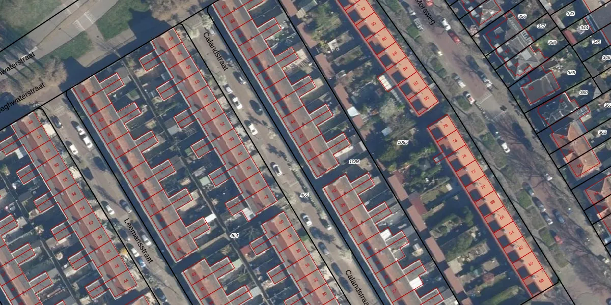 Het perceel waarop Calandstraat 45 staat heeft een oppervlakte van 2905 m². Dit is een zeer groot perceel. De perceeloppervlakte wordt geregistreerd door het Kadaster. Gedetailleerde informatie over de maten van dit perceel kunt u vinden in het rapport Kadastrale kaart met maatvoering van Calandstraat 45.