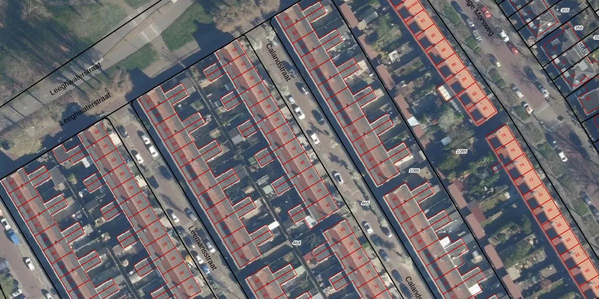 Calandstraat 50 is gelegen op kadastraal perceel LDN01R464. Deze kadastrale aanduiding is uniek en wordt gebruikt door het Kadaster om eigendomsrechten en andere zakelijke rechten vast te leggen. Het perceel maakt onderdeel uit van de kadastrale gemeente Leiden.