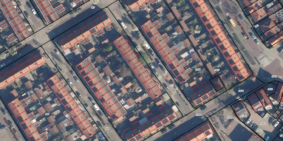 Calandstraat 8-A is gelegen op kadastraal perceel LDN01R470. Deze kadastrale aanduiding is uniek en wordt gebruikt door het Kadaster om eigendomsrechten en andere zakelijke rechten vast te leggen. Het perceel maakt onderdeel uit van de kadastrale gemeente Leiden.