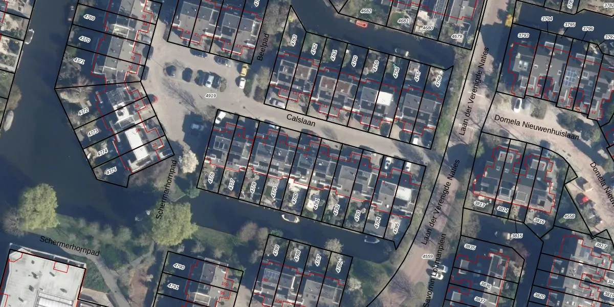 Calslaan 12 is gelegen op kadastraal perceel LDN01O4780. Deze kadastrale aanduiding is uniek en wordt gebruikt door het Kadaster om eigendomsrechten en andere zakelijke rechten vast te leggen. Het perceel maakt onderdeel uit van de kadastrale gemeente Leiden.