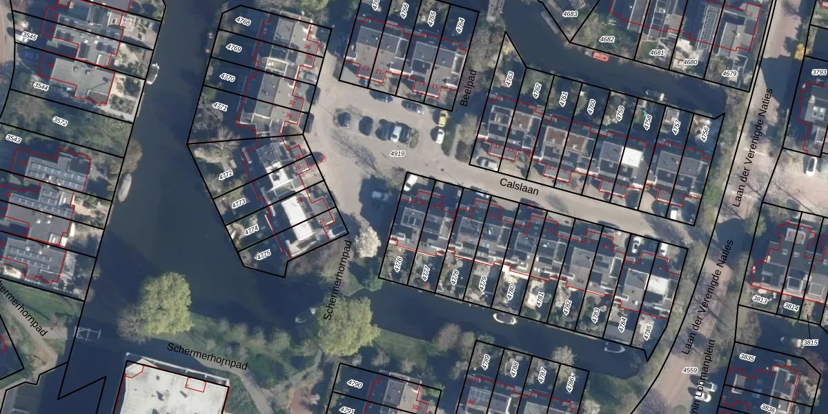Calslaan 20 is gelegen op kadastraal perceel LDN01O4776. Deze kadastrale aanduiding is uniek en wordt gebruikt door het Kadaster om eigendomsrechten en andere zakelijke rechten vast te leggen. Het perceel maakt onderdeel uit van de kadastrale gemeente Leiden.