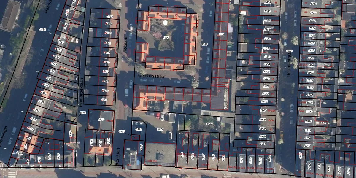 Celebesstraat 9 is gelegen op kadastraal perceel LDN01K4772. Deze kadastrale aanduiding is uniek en wordt gebruikt door het Kadaster om eigendomsrechten en andere zakelijke rechten vast te leggen. Het perceel maakt onderdeel uit van de kadastrale gemeente Leiden.