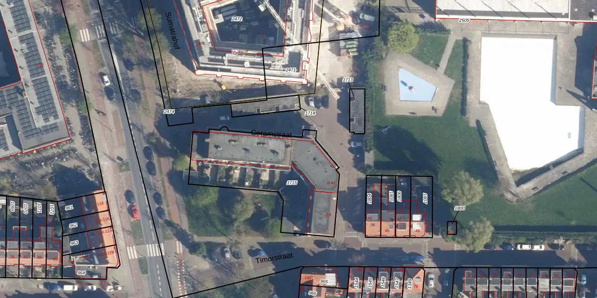 Het perceel waarop Ceramstraat 34 staat heeft een oppervlakte van 1175 m². Dit is een zeer groot perceel. De perceeloppervlakte wordt geregistreerd door het Kadaster. Gedetailleerde informatie over de maten van dit perceel kunt u vinden in het rapport Kadastrale kaart met maatvoering van Ceramstraat 34.