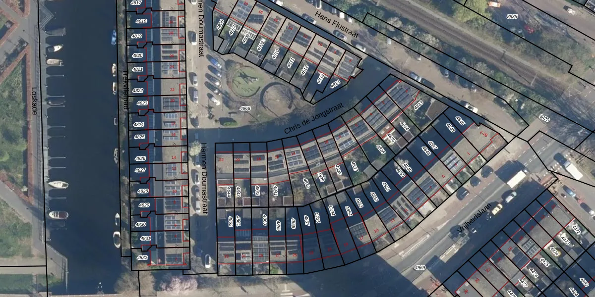 Chris de Jongstraat 14 is gelegen op kadastraal perceel LDN01O4840. Deze kadastrale aanduiding is uniek en wordt gebruikt door het Kadaster om eigendomsrechten en andere zakelijke rechten vast te leggen. Het perceel maakt onderdeel uit van de kadastrale gemeente Leiden.