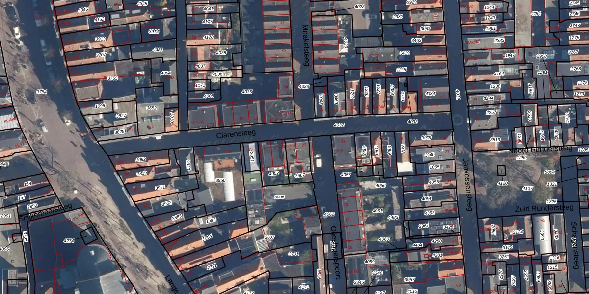 Het perceel waarop Clarensteeg 21-A staat heeft een oppervlakte van 134 m². Dit is een middelgroot perceel. De perceeloppervlakte wordt geregistreerd door het Kadaster. Gedetailleerde informatie over de maten van dit perceel kunt u vinden in het rapport Kadastrale kaart met maatvoering van Clarensteeg 21-A.