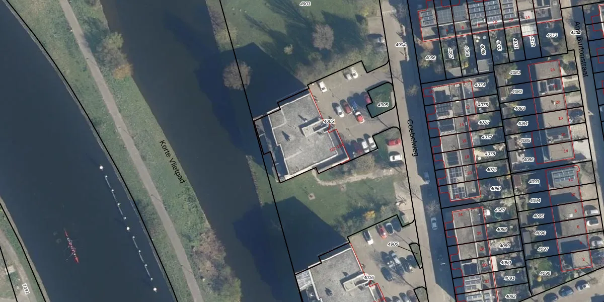 Het perceel waarop het adres ligt is LDN01-O-4005. De afkorting 'LDN01' staat voor kadastrale gemeente Leiden. De oppervlakte van het perceel is 1105 m². Dat is groter dan gemiddeld in Leiden, waar de gemiddelde perceeloppervlakte op 703,99 m² ligt. Het grootste perceel in de kadastrale gemeente is 51,8 ha. Het kleinste perceel heeft een oppervlakte van 0 m². Op het perceel liggen in totaal 20 adressen. De huidige grenzen van het perceel zijn digitaal in de Basisregistratie Kadaster (BRK) geregistreerd op 29-08-2003.