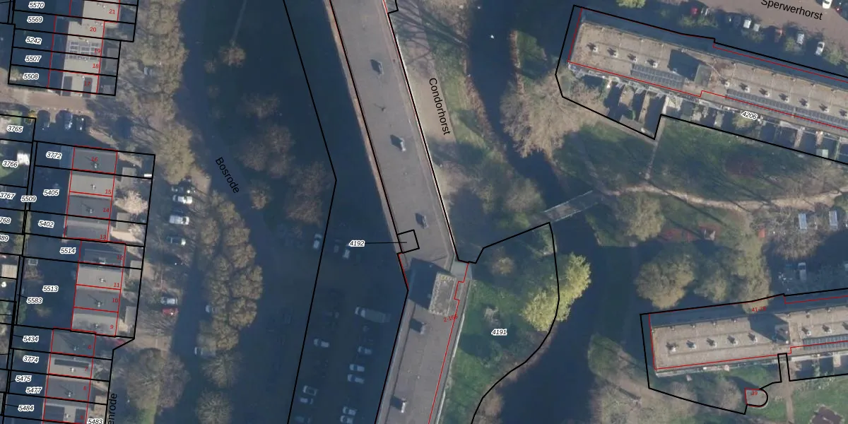Het perceel waarop Condorhorst 100 staat heeft een oppervlakte van 3278 m². Dit is een zeer groot perceel. De perceeloppervlakte wordt geregistreerd door het Kadaster. Gedetailleerde informatie over de maten van dit perceel kunt u vinden in het rapport Kadastrale kaart met maatvoering van Condorhorst 100.