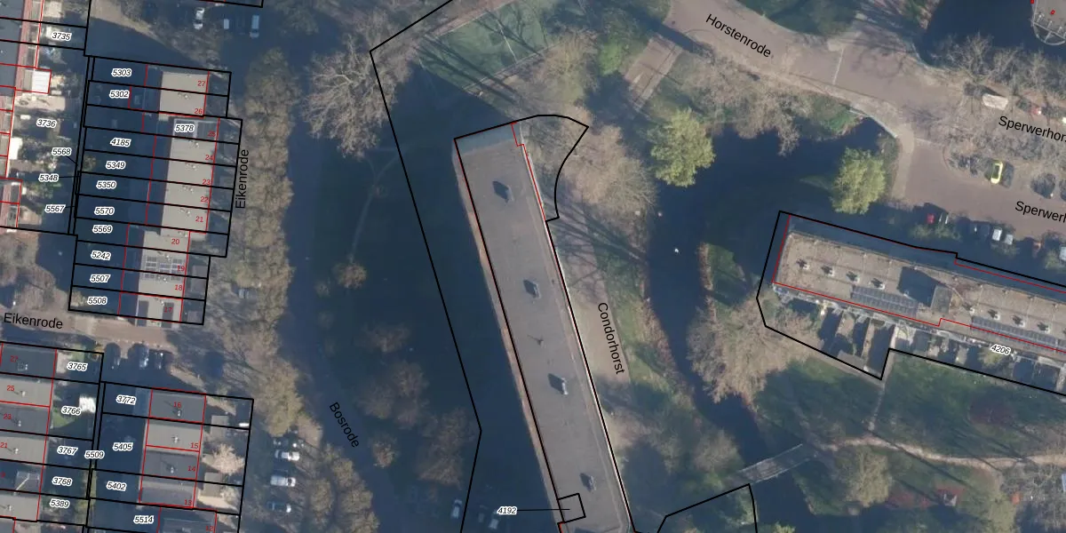 Het perceel waarop Condorhorst 104 staat heeft een oppervlakte van 3278 m². Dit is een zeer groot perceel. De perceeloppervlakte wordt geregistreerd door het Kadaster. Gedetailleerde informatie over de maten van dit perceel kunt u vinden in het rapport Kadastrale kaart met maatvoering van Condorhorst 104.