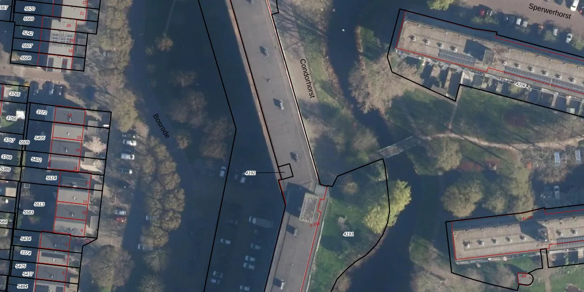 Het perceel waarop Condorhorst 120 staat heeft een oppervlakte van 3278 m². Dit is een zeer groot perceel. De perceeloppervlakte wordt geregistreerd door het Kadaster. Gedetailleerde informatie over de maten van dit perceel kunt u vinden in het rapport Kadastrale kaart met maatvoering van Condorhorst 120.