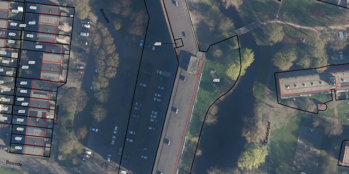 Het perceel waarop Condorhorst 13 staat heeft een oppervlakte van 3278 m². Dit is een zeer groot perceel. De perceeloppervlakte wordt geregistreerd door het Kadaster. Gedetailleerde informatie over de maten van dit perceel kunt u vinden in het rapport Kadastrale kaart met maatvoering van Condorhorst 13.