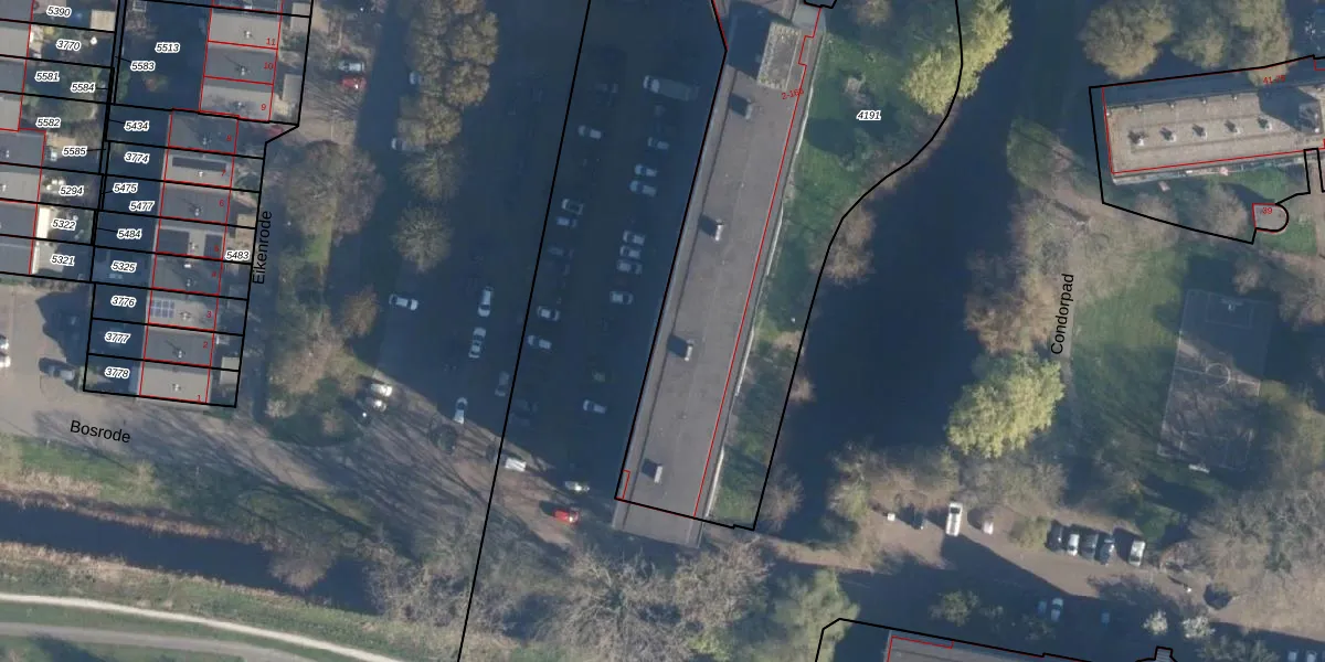 Het perceel waarop Condorhorst 16 staat heeft een oppervlakte van 3278 m². Dit is een zeer groot perceel. De perceeloppervlakte wordt geregistreerd door het Kadaster. Gedetailleerde informatie over de maten van dit perceel kunt u vinden in het rapport Kadastrale kaart met maatvoering van Condorhorst 16.
