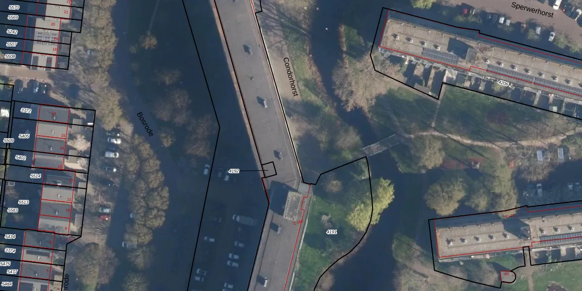 Het perceel waarop Condorhorst 20 staat heeft een oppervlakte van 3278 m². Dit is een zeer groot perceel. De perceeloppervlakte wordt geregistreerd door het Kadaster. Gedetailleerde informatie over de maten van dit perceel kunt u vinden in het rapport Kadastrale kaart met maatvoering van Condorhorst 20.