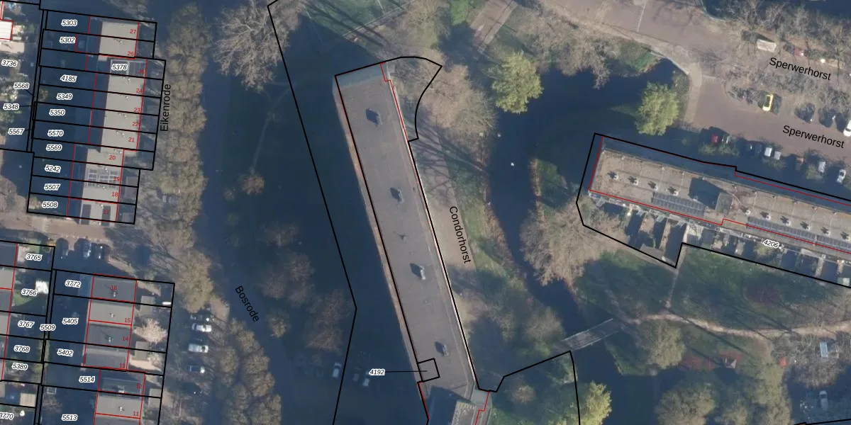 Het perceel waarop Condorhorst 23 staat heeft een oppervlakte van 3278 m². Dit is een zeer groot perceel. De perceeloppervlakte wordt geregistreerd door het Kadaster. Gedetailleerde informatie over de maten van dit perceel kunt u vinden in het rapport Kadastrale kaart met maatvoering van Condorhorst 23.