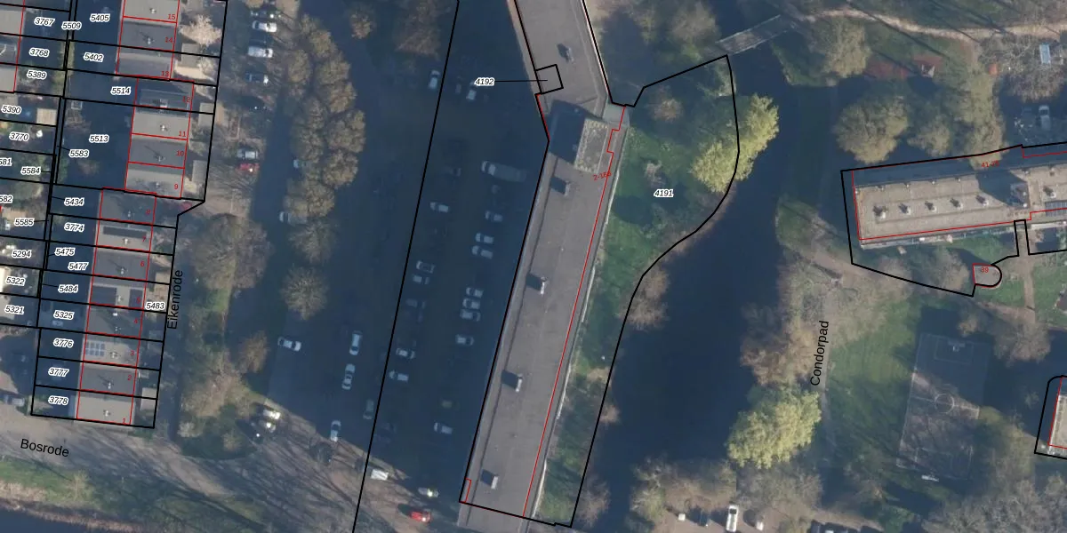 Het perceel waarop Condorhorst 54 staat heeft een oppervlakte van 3278 m². Dit is een zeer groot perceel. De perceeloppervlakte wordt geregistreerd door het Kadaster. Gedetailleerde informatie over de maten van dit perceel kunt u vinden in het rapport Kadastrale kaart met maatvoering van Condorhorst 54.