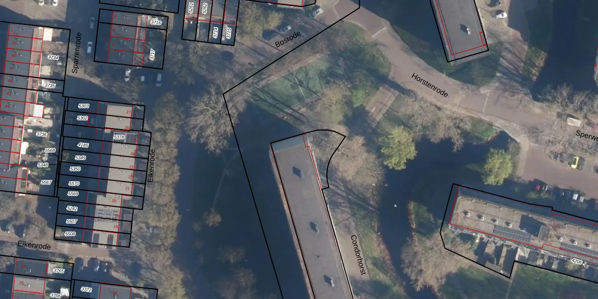 Het perceel waarop Condorhorst 86 staat heeft een oppervlakte van 3278 m². Dit is een zeer groot perceel. De perceeloppervlakte wordt geregistreerd door het Kadaster. Gedetailleerde informatie over de maten van dit perceel kunt u vinden in het rapport Kadastrale kaart met maatvoering van Condorhorst 86.