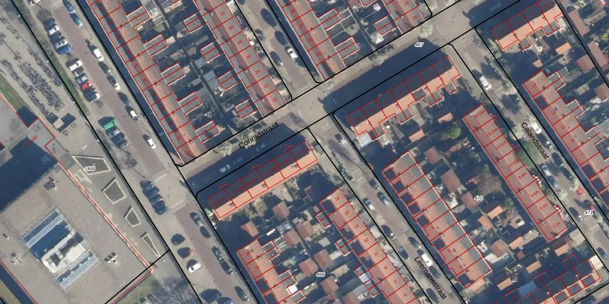 Conradstraat 12-A is gelegen op kadastraal perceel LDN01R468. Deze kadastrale aanduiding is uniek en wordt gebruikt door het Kadaster om eigendomsrechten en andere zakelijke rechten vast te leggen. Het perceel maakt onderdeel uit van de kadastrale gemeente Leiden.
