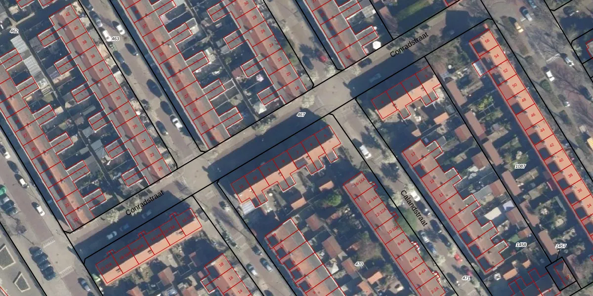 Conradstraat 7 is gelegen op kadastraal perceel LDN01R470. Deze kadastrale aanduiding is uniek en wordt gebruikt door het Kadaster om eigendomsrechten en andere zakelijke rechten vast te leggen. Het perceel maakt onderdeel uit van de kadastrale gemeente Leiden.