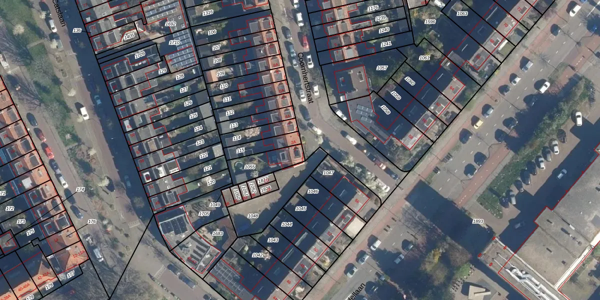 Het perceel waarop Coornhertstraat 2 staat heeft een oppervlakte van 184 m². Dit is een middelgroot perceel. De perceeloppervlakte wordt geregistreerd door het Kadaster. Gedetailleerde informatie over de maten van dit perceel kunt u vinden in het rapport Kadastrale kaart met maatvoering van Coornhertstraat 2.