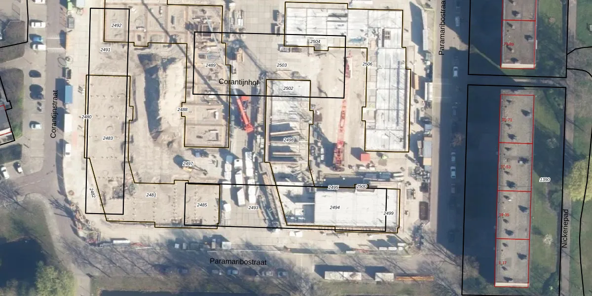Het perceel waarop Corantijnhof 3 staat heeft een oppervlakte van 440 m². Dit is een groot perceel. De perceeloppervlakte wordt geregistreerd door het Kadaster. Gedetailleerde informatie over de maten van dit perceel kunt u vinden in het rapport Kadastrale kaart met maatvoering van Corantijnhof 3.