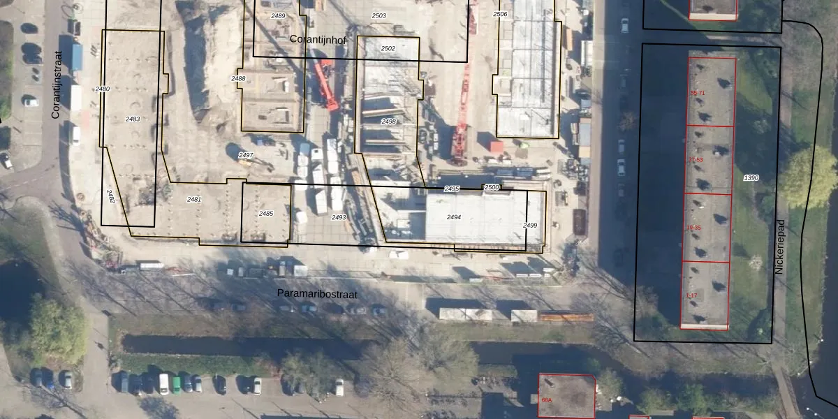 Het perceel waarop Corantijnhof 31 staat heeft een oppervlakte van 489 m². Dit is een groot perceel. De perceeloppervlakte wordt geregistreerd door het Kadaster. Gedetailleerde informatie over de maten van dit perceel kunt u vinden in het rapport Kadastrale kaart met maatvoering van Corantijnhof 31.