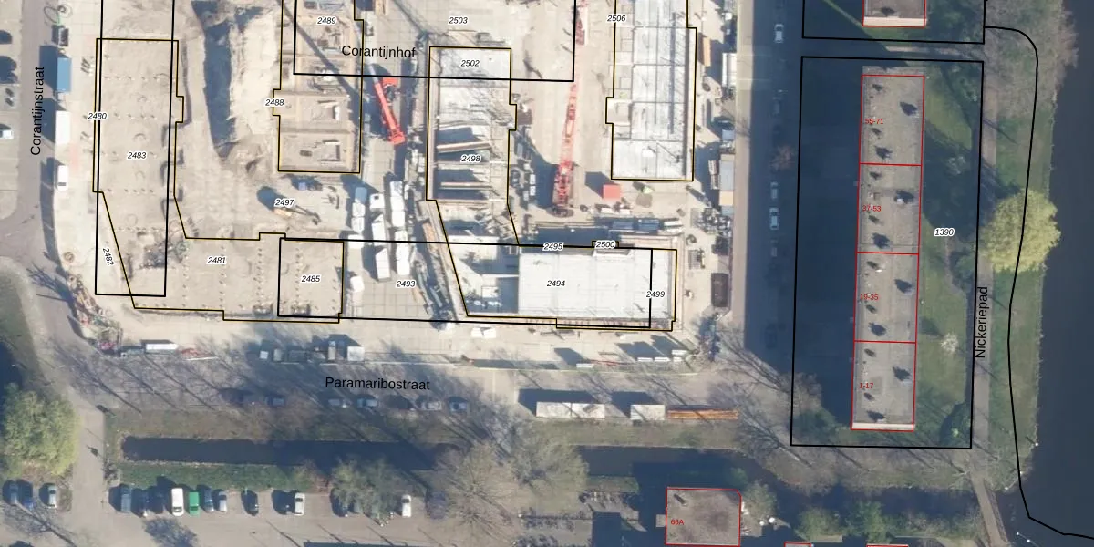Corantijnhof 33 is gelegen op kadastraal perceel LDN01N2494. Deze kadastrale aanduiding is uniek en wordt gebruikt door het Kadaster om eigendomsrechten en andere zakelijke rechten vast te leggen. Het perceel maakt onderdeel uit van de kadastrale gemeente Leiden.