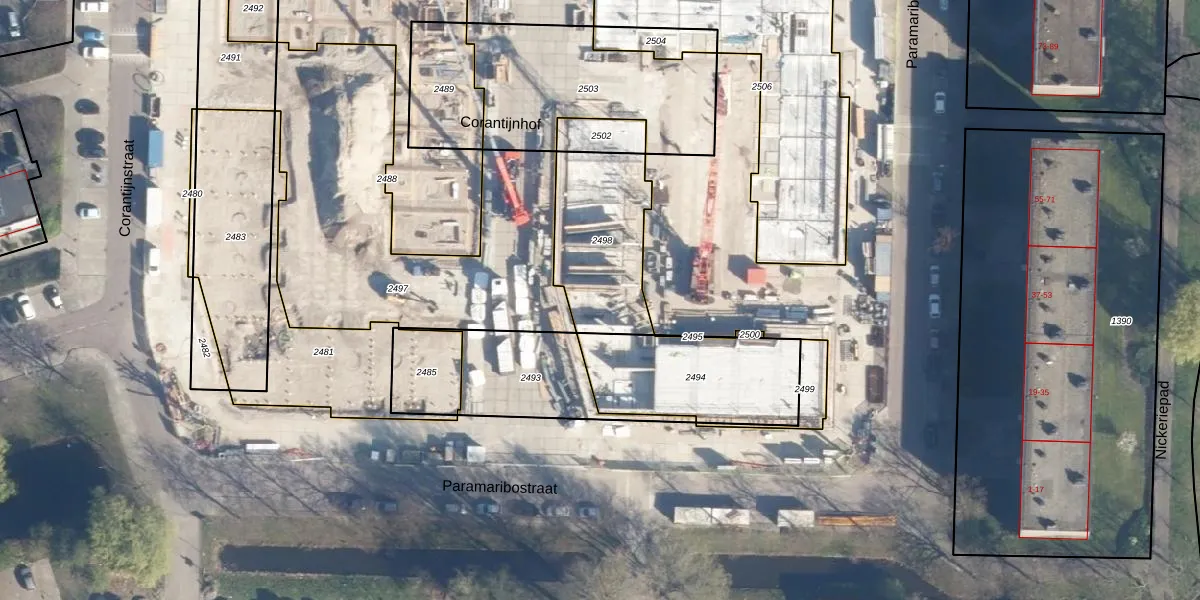 Het perceel waarop Corantijnhof 41 staat heeft een oppervlakte van 440 m². Dit is een groot perceel. De perceeloppervlakte wordt geregistreerd door het Kadaster. Gedetailleerde informatie over de maten van dit perceel kunt u vinden in het rapport Kadastrale kaart met maatvoering van Corantijnhof 41.