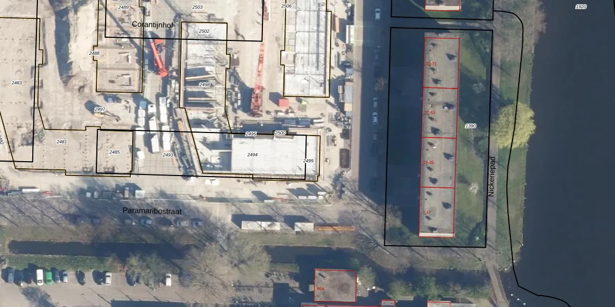 Het perceel waarop Corantijnhof 59 staat heeft een oppervlakte van 76 m². Dit is een klein perceel. De perceeloppervlakte wordt geregistreerd door het Kadaster. Gedetailleerde informatie over de maten van dit perceel kunt u vinden in het rapport Kadastrale kaart met maatvoering van Corantijnhof 59.