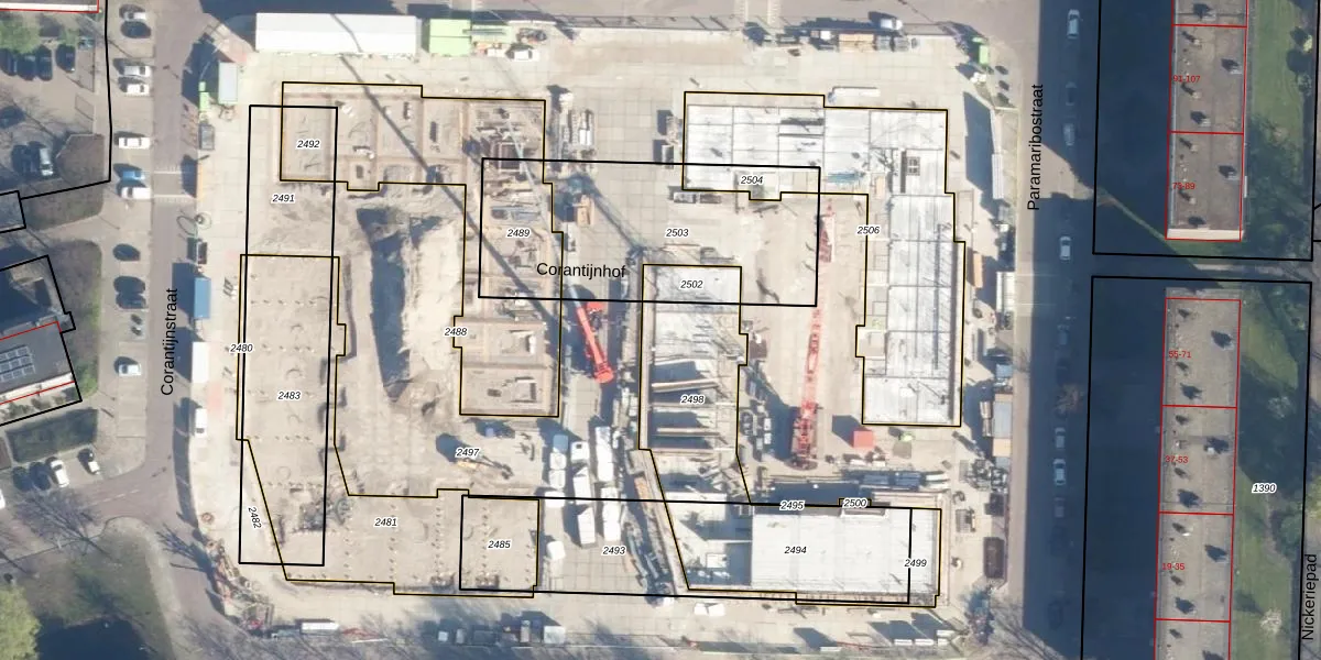 Het perceel waarop Corantijnhof 79 staat heeft een oppervlakte van 440 m². Dit is een groot perceel. De perceeloppervlakte wordt geregistreerd door het Kadaster. Gedetailleerde informatie over de maten van dit perceel kunt u vinden in het rapport Kadastrale kaart met maatvoering van Corantijnhof 79.