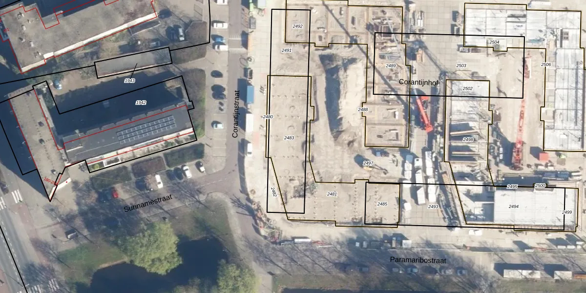 Het perceel waarop Corantijnstraat 23 staat heeft een oppervlakte van 536 m². Dit is een groot perceel. De perceeloppervlakte wordt geregistreerd door het Kadaster. Gedetailleerde informatie over de maten van dit perceel kunt u vinden in het rapport Kadastrale kaart met maatvoering van Corantijnstraat 23.