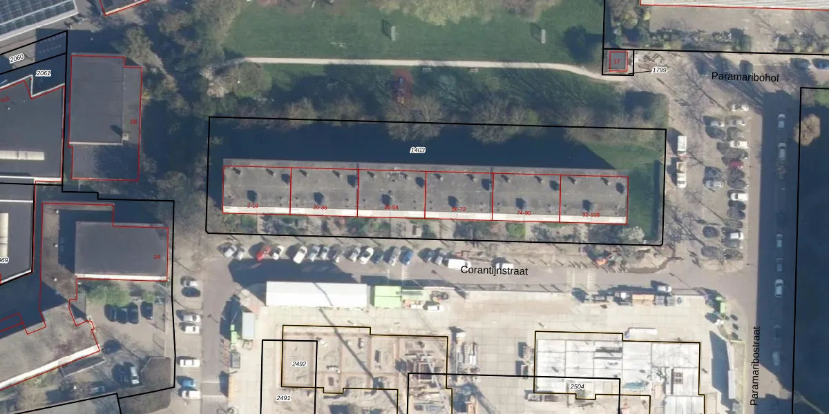 Het perceel waarop Corantijnstraat 48 staat heeft een oppervlakte van 3081 m². Dit is een zeer groot perceel. De perceeloppervlakte wordt geregistreerd door het Kadaster. Gedetailleerde informatie over de maten van dit perceel kunt u vinden in het rapport Kadastrale kaart met maatvoering van Corantijnstraat 48.