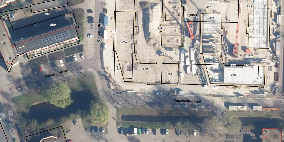 Corantijnstraat 53 is gelegen op kadastraal perceel LDN01N2481. Deze kadastrale aanduiding is uniek en wordt gebruikt door het Kadaster om eigendomsrechten en andere zakelijke rechten vast te leggen. Het perceel maakt onderdeel uit van de kadastrale gemeente Leiden.