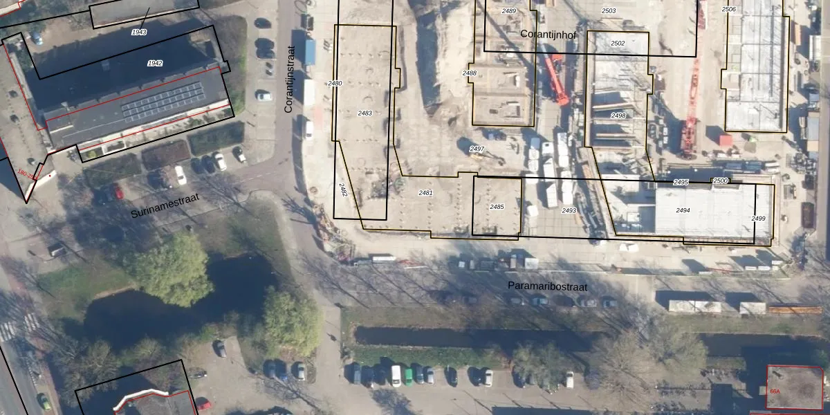 Het perceel waarop Corantijnstraat 77 staat heeft een oppervlakte van 375 m². Dit is een groot perceel. De perceeloppervlakte wordt geregistreerd door het Kadaster. Gedetailleerde informatie over de maten van dit perceel kunt u vinden in het rapport Kadastrale kaart met maatvoering van Corantijnstraat 77.
