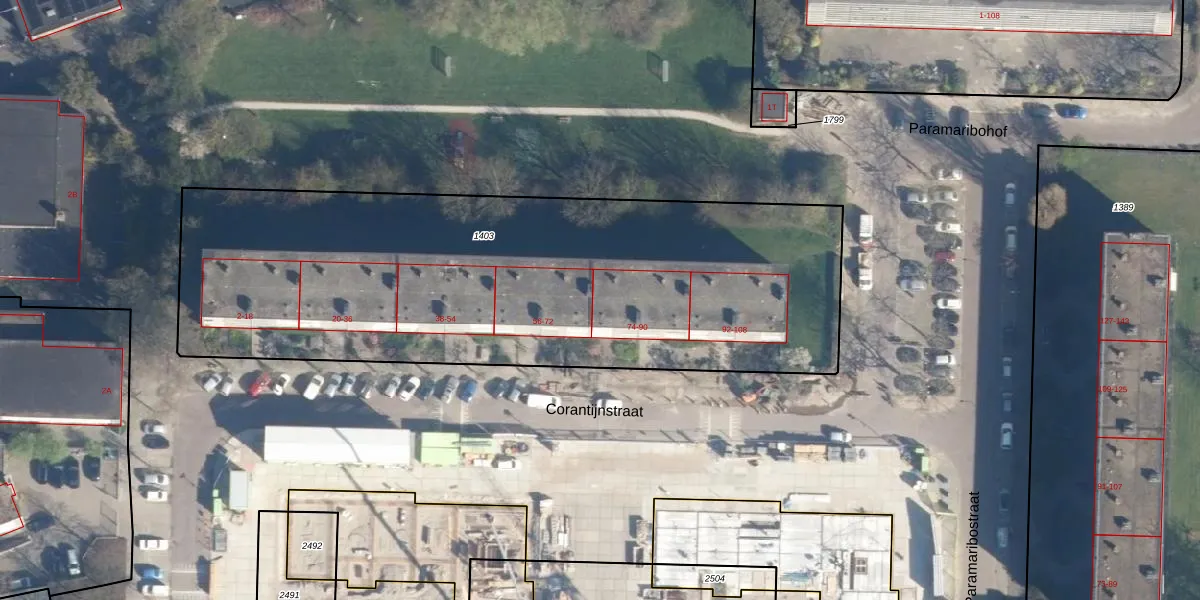 Het perceel waarop Corantijnstraat 80 staat heeft een oppervlakte van 3081 m². Dit is een zeer groot perceel. De perceeloppervlakte wordt geregistreerd door het Kadaster. Gedetailleerde informatie over de maten van dit perceel kunt u vinden in het rapport Kadastrale kaart met maatvoering van Corantijnstraat 80.